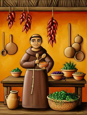 Saint Paschal Baylon, known as San Pasqual in Spanish, was a 16th-century Spanish Franciscan lay brother. He was known for his humility, devotion to prayer, and service in the kitchen, which led to him becoming the patron saint of cooks, kitchens, and shepherds.